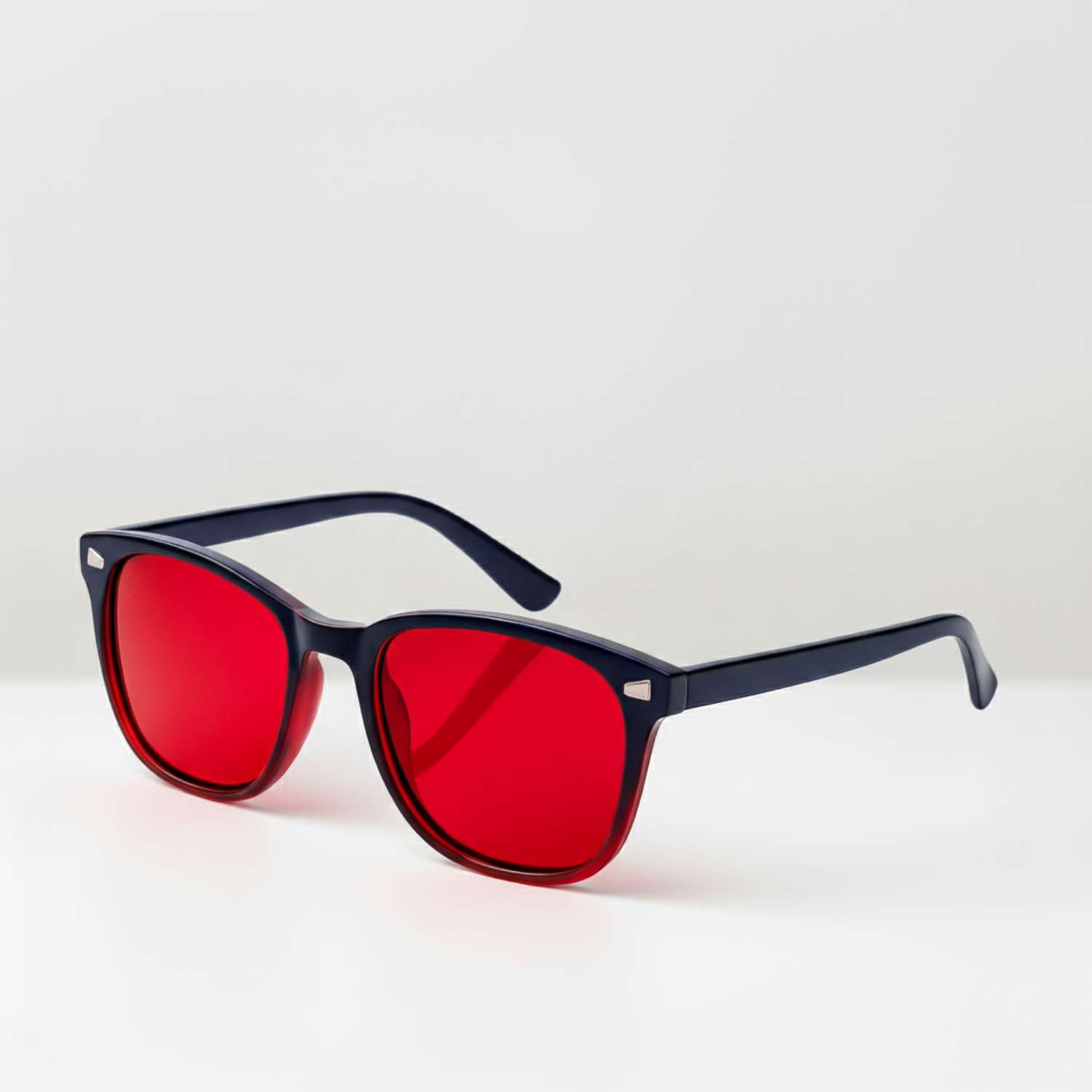 Red lenses block up to 98% of blue and green light and are the ultimate support for your melatonin production — even if it makes the world look completely red.