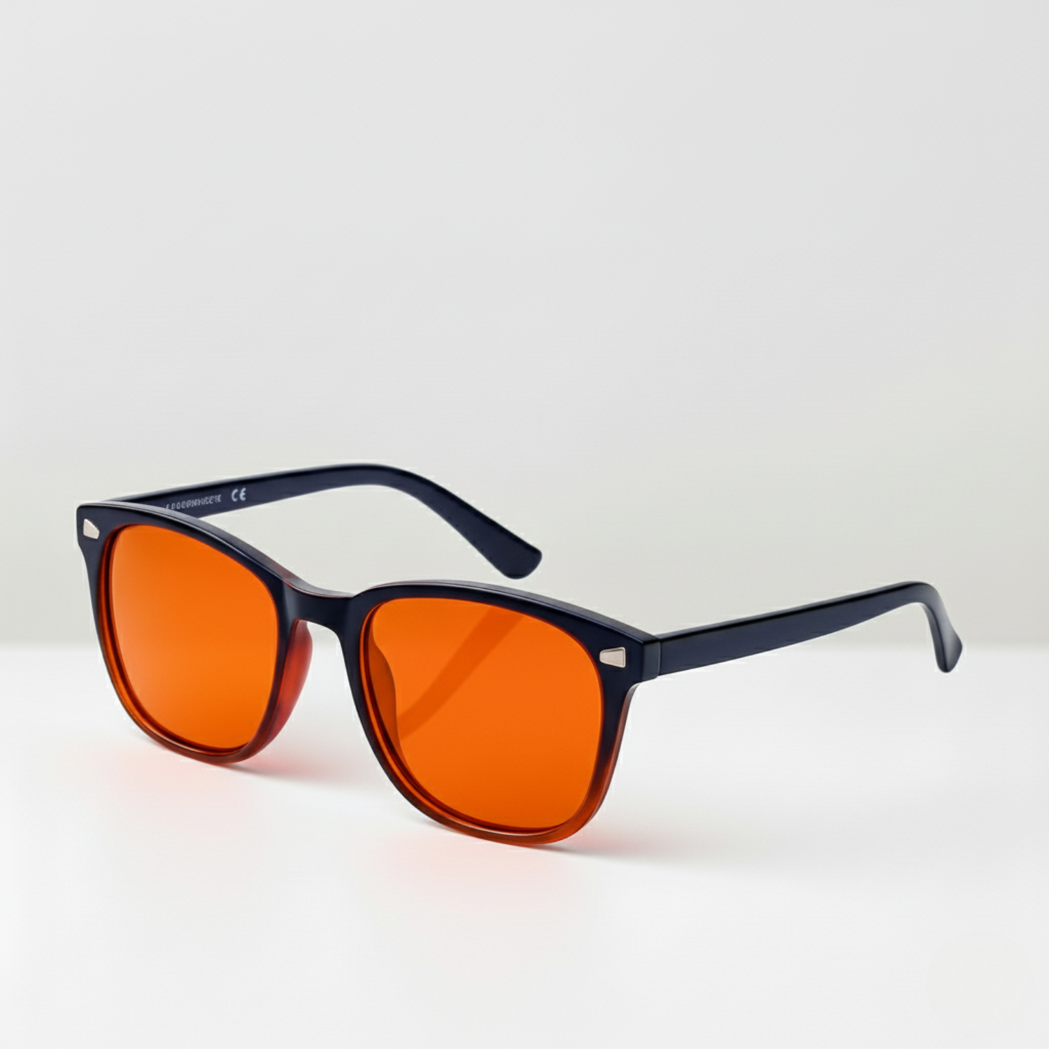 ChatGPT said: Orange lenses block 60–80% of blue and green light. They also help with melatonin production, but you see more clearly because your vision is less red.