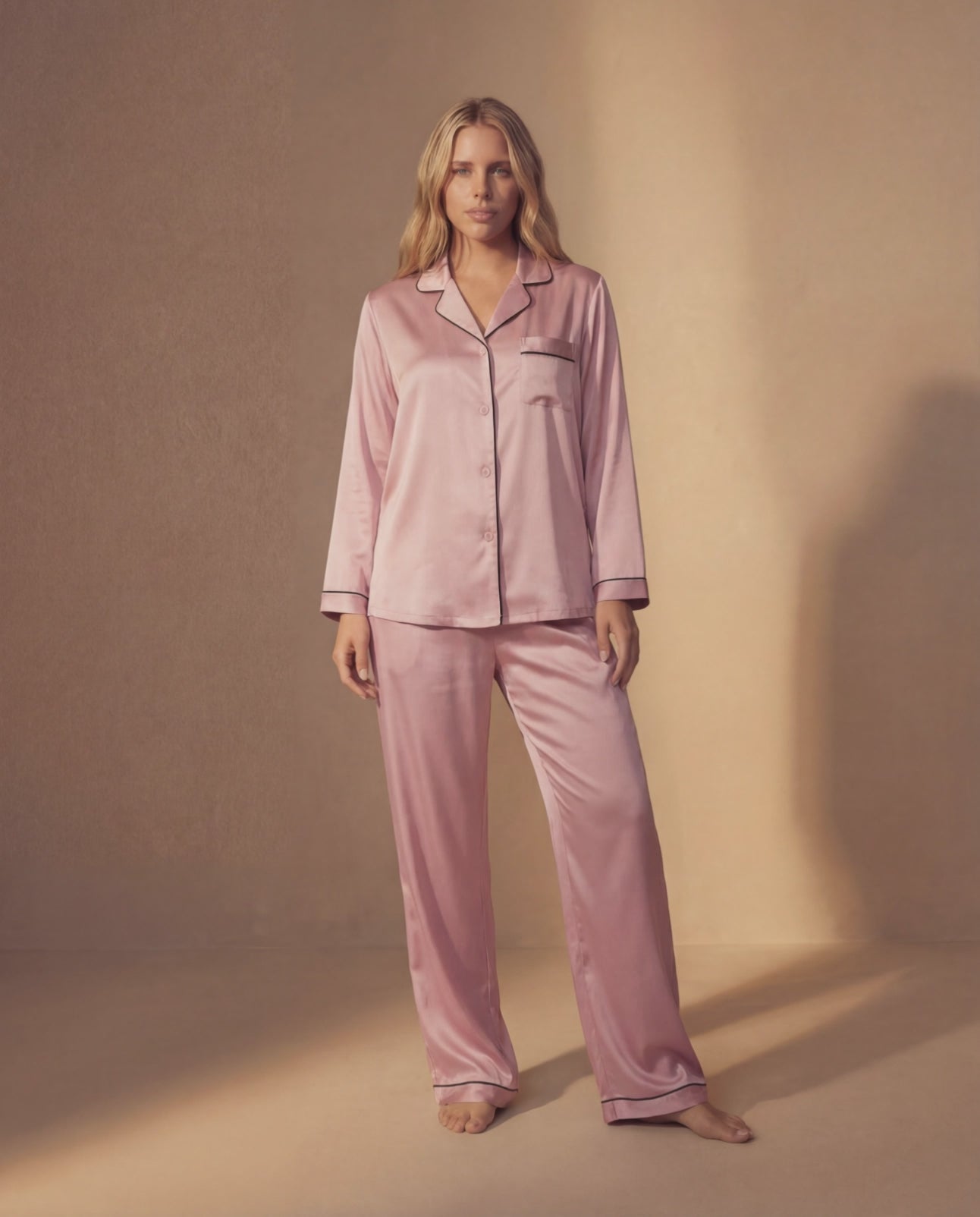 The elegance of the cut, the fluid drape, the subtle details — everything about this set feels considered. You don’t wear it to impress, yet everything about it reflects taste, self-respect, and discernment. You fall asleep feeling composed and elevated, and wake up grounded, polished, and entirely at ease.