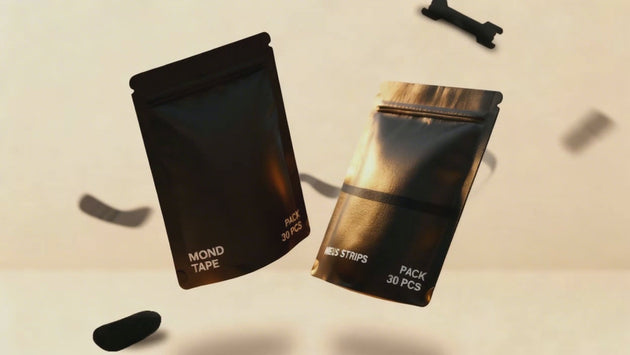 De tape sluit je mond zachtjes af, zodat je lichaam vanzelf overschakelt op neusademhaling.