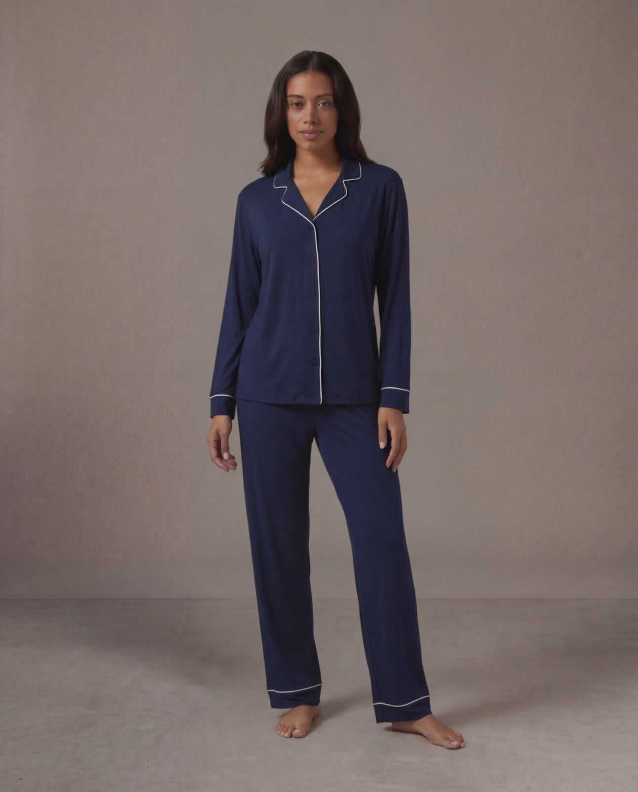 Modal is a premium natural fiber, celebrated for its exceptional softness and fluid drape. It feels incredibly smooth and gentle on the skin, offering breathable comfort that moves effortlessly with your body. Lightweight yet refined, modal creates a calm, polished feel that lasts from evening to morning.